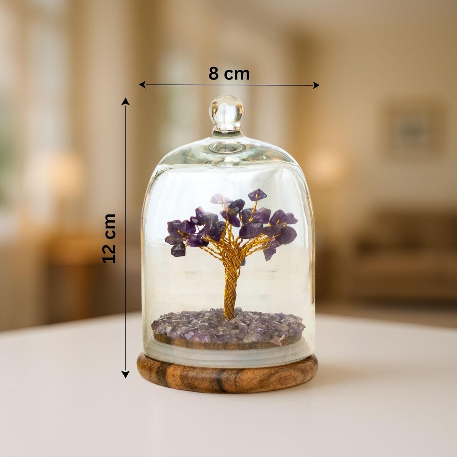 Protective Dome Design: The clear glass or acrylic dome shields the delicate amethyst tree from dust and damage while magnifying and highlighting its beauty. The transparent cover enhances the overall display, allowing the tree to be admired from all angles.